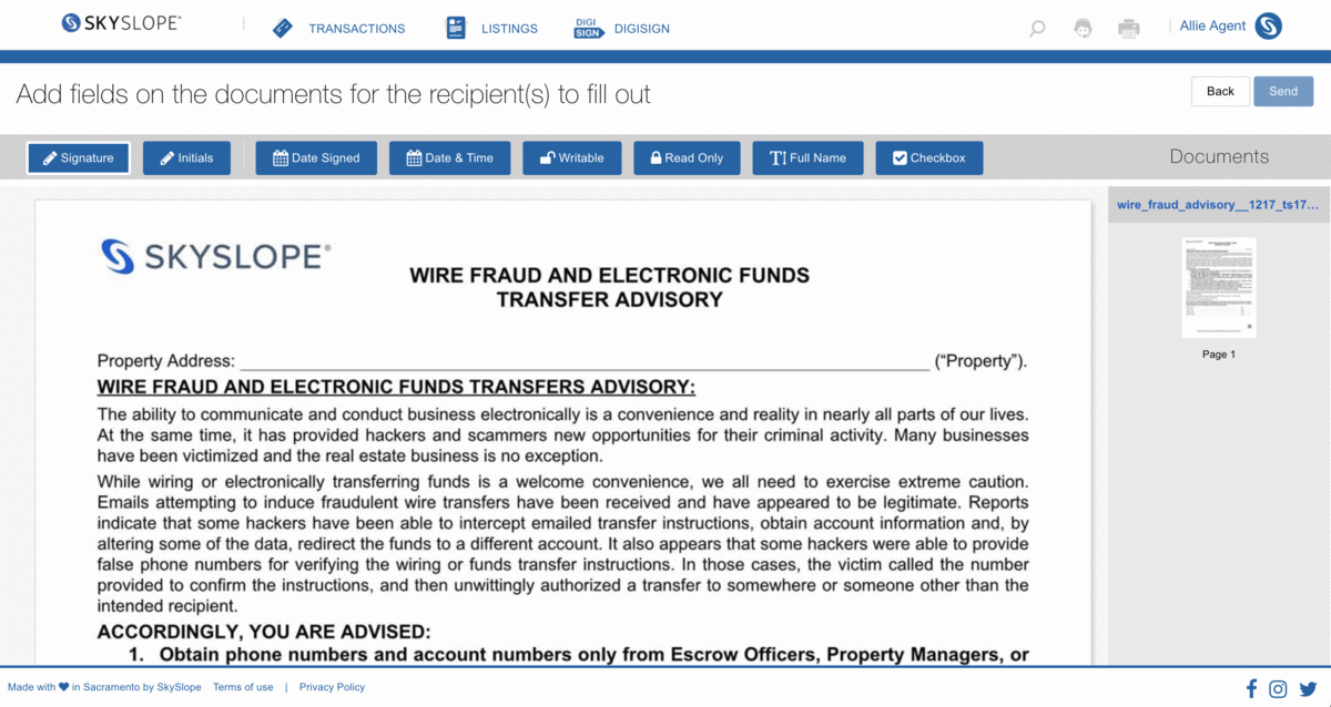 We have begun to roll out our newly redesigned digital signature tool, DigiSign, to a small group of users this month and will continue to update all SkySlope accounts throughout 2021. No need to worry; your signed envelopes will transfer over so you’ll have access to all your data, and you’ll be on your way to a new and improved digital signature platform.